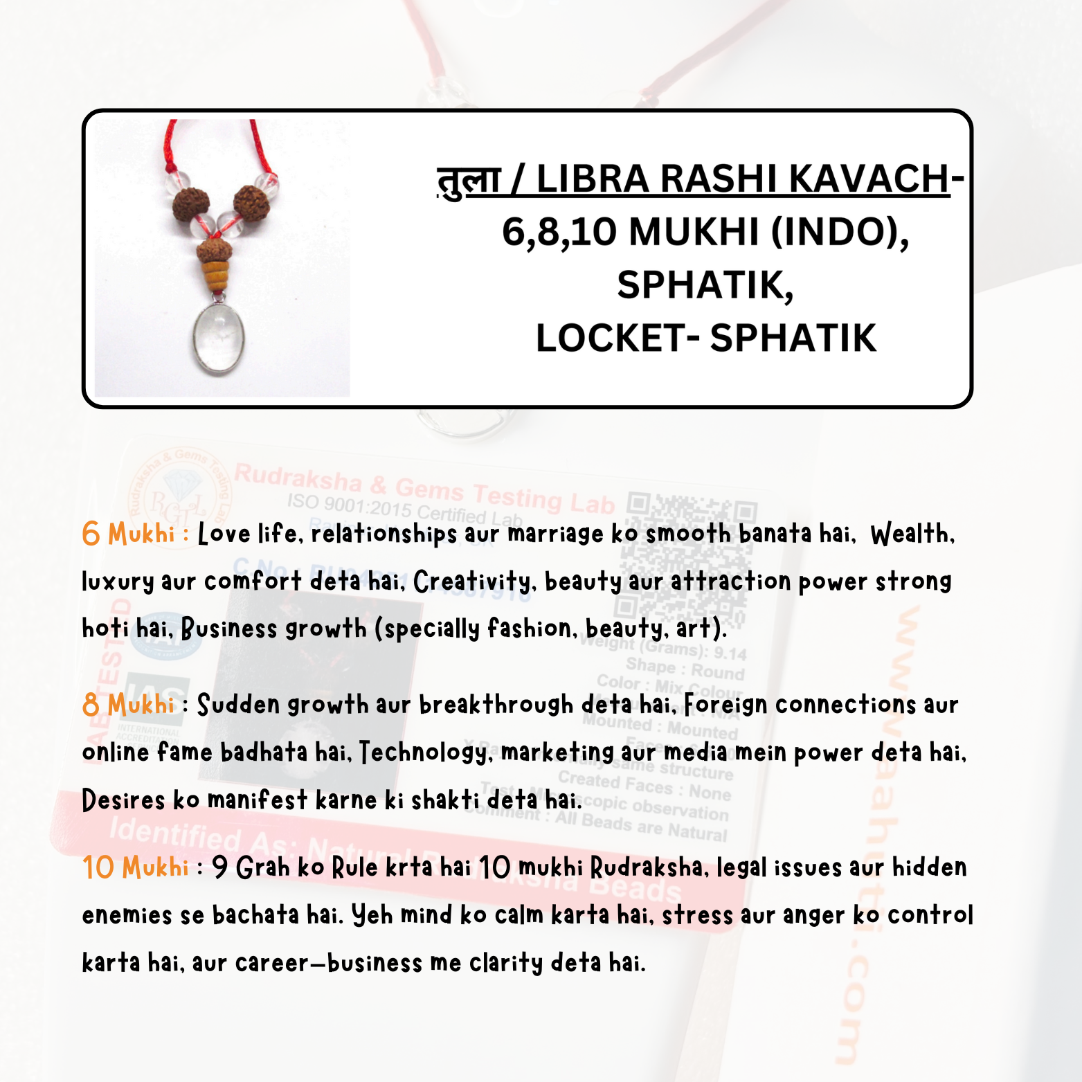 Libra zodiac kavach is an impressive kavach made of high-quality Rudraksha, gemstones and semi-precious stones which is very beneficial for Libra people.